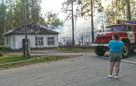 Сначала загорелся ангар площадью 600 квадратных метров во дворе между магазином и бывшим клубом. В какой-то момент огонь перекинулся на соседние здания. Тушили огонь девять пожарных на трех спецмашинах. Причина устанавливается.
