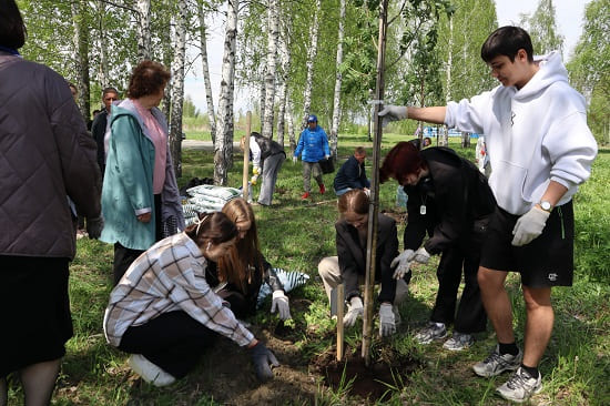 Участники акции с энтузиазмом занимались посадкой: копали лунки, утаптывали грунт, поливали саженцы и закрепляли их на колышках. Посаженные деревья морозоустойчивых сортов украсят аллею на долгие годы.