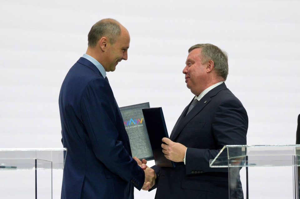 Будут созданы новые производства углеволокна и ПАН-прекурсора. Договор заключили Денис Паслер, первый замгендиректора госкорпорации «Росатом» Кирилл Комаров, гендиректор «Титановой долины» Андрей Антипов и начальник по капитальному строительству Композитного дивизиона «Росатома» Денис Максимов.