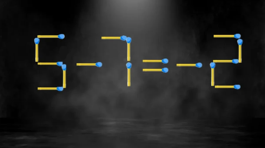 Нужно превратить знак «плюс» в знак «минус», забрав одну спичку. А эту спичку нужно добавить к цифре «2», чтобы получилось «-2». И вот у нас верный пример «5-7=-2».