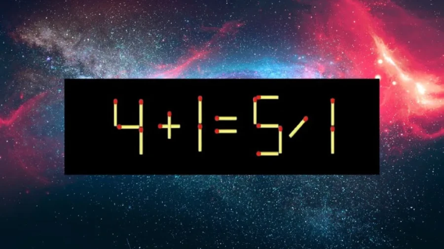 Если вы не можете догадаться, посмотрите на картинку с ответом. Нужно забрать спичку из цифры «7» и сделать из нее знак деления. Тогда получится «4+1=5/1». Вот так.