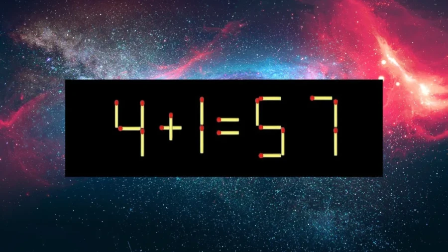 На картинке уравнение «4+1=57», но оно неправильное. Нужно переставить всего одну спичку так, чтобы получилось верно.