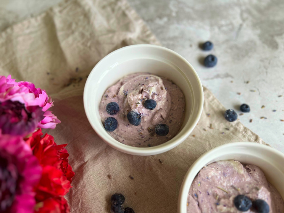 Все начинаем с творога. Отправляем его в блендер. Очищенный банан разламываем на куски и тоже в блендер. Вслед за бананом отправляем ягоды. Можно выбрать любые, в том числе и замороженные. Все эти ингредиенты измельчаем примерно 40 секунд. Всё, готово.