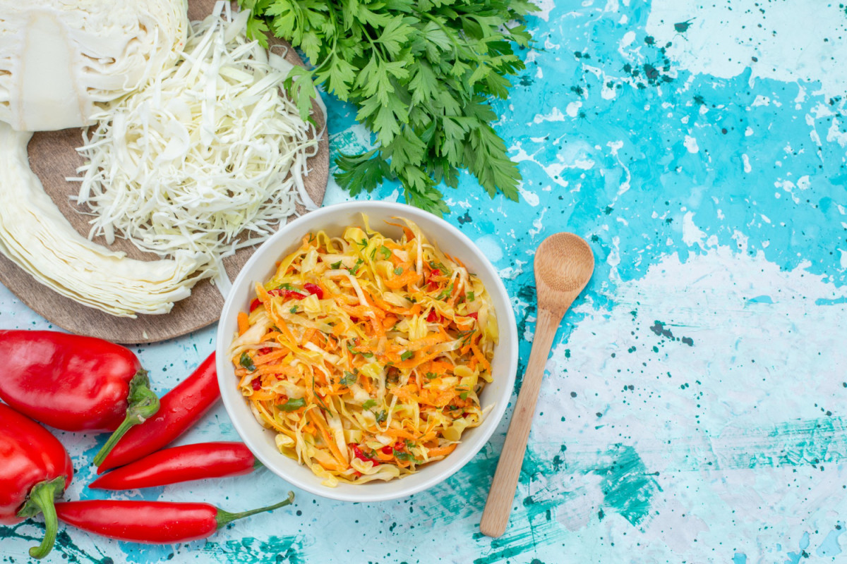 Без мяса и колбасы — бюджетный овощной салат: с обжаренным луком и горчичной заправкой