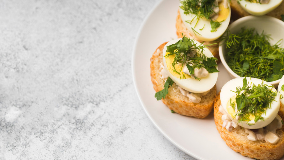 Чтобы её приготовить, сварите яйца вкрутую, натрите их на крупной тёрке и смешайте с плавленым сыром. Добавьте мелко нарезанный чеснок (если хотите более пикантный вкус) и укроп. Всё хорошенько перемешайте и попробуйте. Если надо, добавьте соль и перец по вкусу.