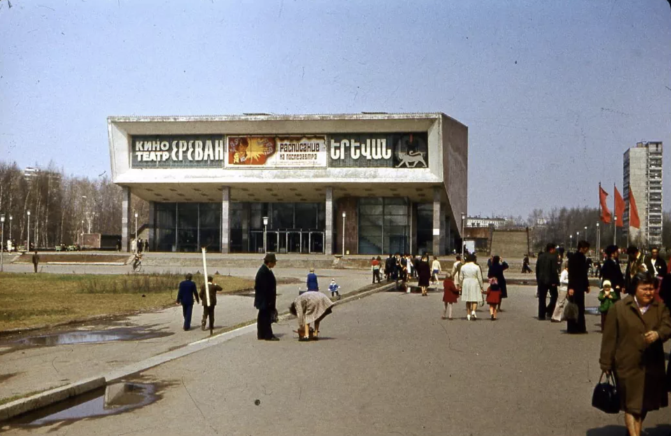 Кинотеатр был красивый: большой стеклянный вход, а внутри — просторный зал, где стояли столики и кресла, чтобы люди могли отдохнуть или что-нибудь съесть. На стене были даже мозаики с армянскими узорами. Был и буфет, где можно было перекусить, и даже полноценный буфет побольше.