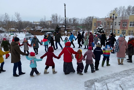 Ребятишки с особенным вниманием слушали мудрые, светлые наставления среднеуральского пастыря, восторженно принимали подарки, которые приготовили специально для них по случаю Рождества, а в финале, выйдя на просторную площадку перед храмом, закружились вместе со всеми в большом хороводе (на фото), славя появление на свет Иисуса Христа.