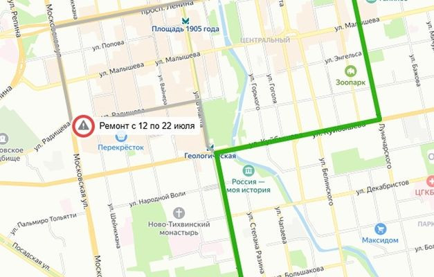 В связи с ремонтом трамвайных путей с 22 июля до 1 августа перекроют выезд с улицы Радищева на Московскую со стороны 8 Марта, сообщает администрация Екатеринбурга.
