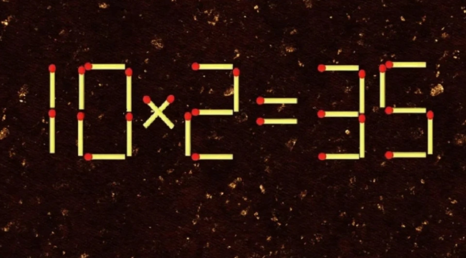 Представьте, что на столе перед вами из выложено неравенство 10×2=35. Вам предстоит исправить ошибку в течении 20 секунд. И помните, что переложить можно только одну спичку.