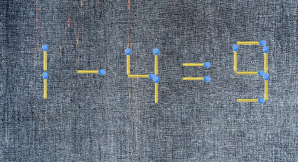 В нашей редакции мы тоже любим такие проверки на внимательность. Сегодня предлагаем вам разобраться с примером «1-4=9», в котором есть ошибка. Вам нужно переставить всего одну спичку так, чтобы равенство стало верным.