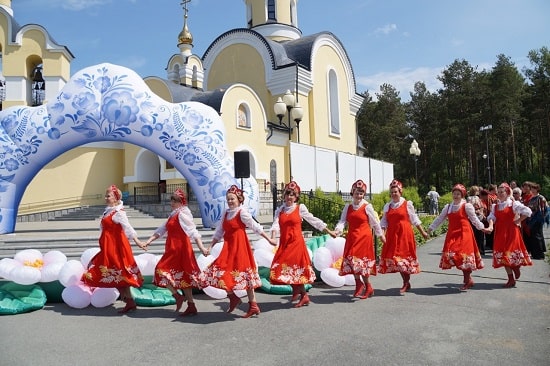 На территории Свято-Никольского храма в честь праздника прошли народные гуляния: жители плели венки, мастерили кубышки и куклы, для гостей провели концерт коллективы Дворца культуры. Украсила площадку компания «КвадроШоу».