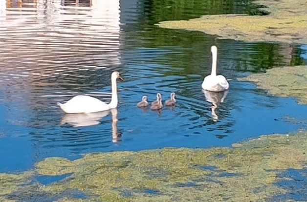 Селяне всегда любовались грациозными и гордыми белоснежными птицами. Недавно лебединая семья впервые вывела четверых птенцов, рассказывает E1.RU.