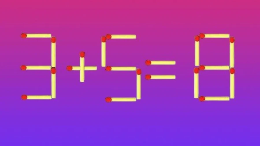 Чтобы решить эту задачку, нужно изменить первое число. Превратите «9» в «3», а потом добавьте спичку к нулю, чтобы получилась цифра «8». В итоге должно получиться «3+5=8».