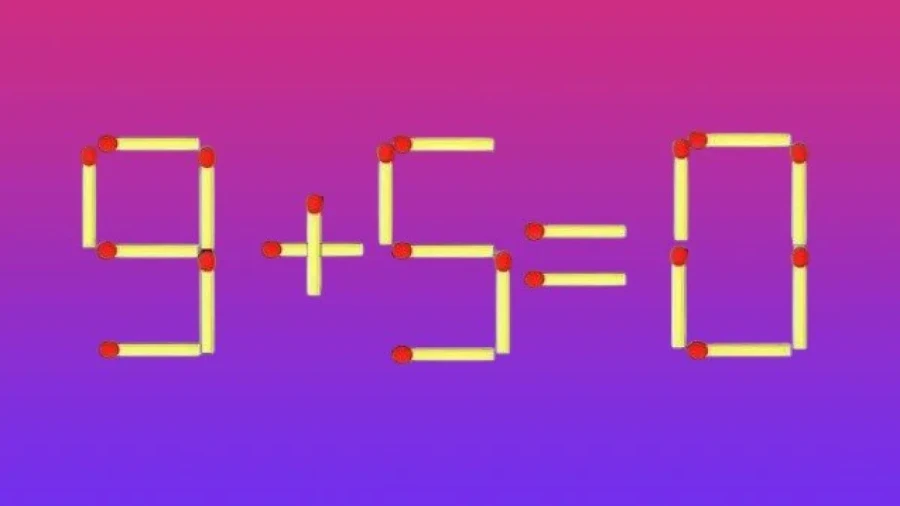 На картинке написано «9+5=0», но это неправильно. Нужно переставить всего одну спичку, чтобы получилось правильное равенство.