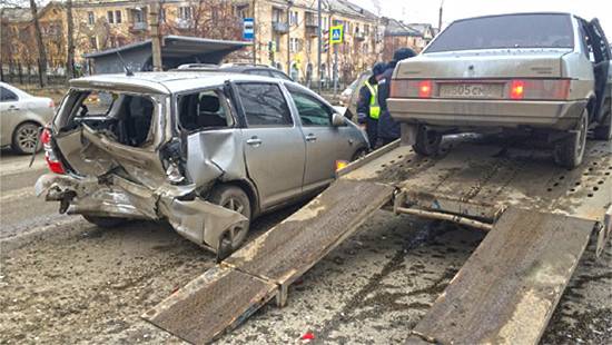 ДТП на улице Петрова в Верхней Пышме. Четыре автомобиля на перекрестке у светофора один за другим въехали друг в друга