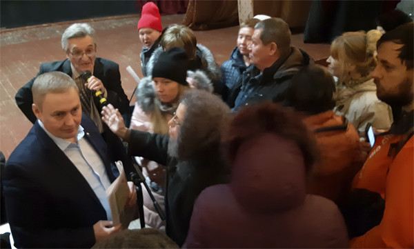 Зал кинотеатра «Волна» стал заполнятся еще задолго до назначенного времени. К началу встречи свободных мест почти не осталось. Встреча планировалась в форме собрания горожан и всех действующих общественных организаций. Организатором общения выступила Общественная палата, модератором стал председатель движения Виктор Тупикин, который без долгого вступления предоставил слово выступающим.