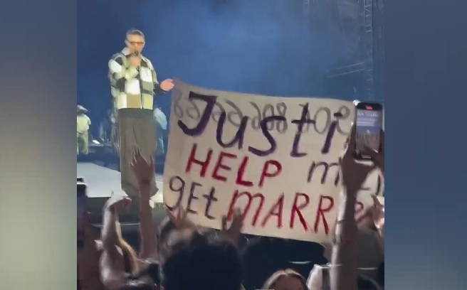 В ходе выступления артиста, Кристина регулярно демонстрировала Тимбирлейку и зрителям собственноручно изготовленный плакат. На нем по-английски было начертано «Justin, help me get married», что в переводе на великий и могучий означает «Джастин, помоги мне выйти замуж».