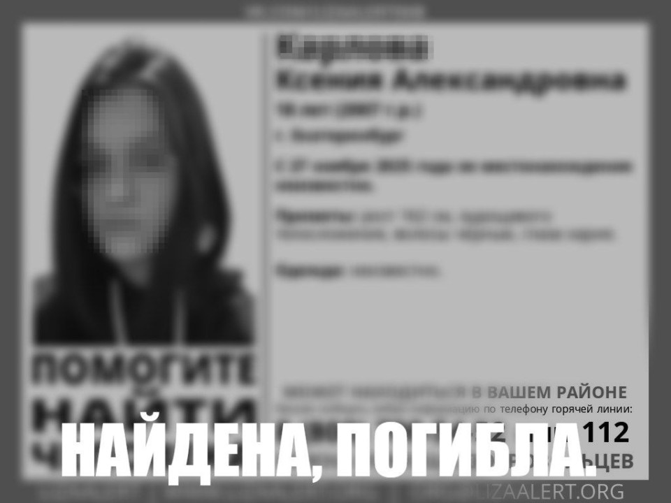 18-летняя Ксения К., которая бесследно исчезла 2 недели назад, погибла. Сообщение об этом опубликовано в Telegram-канале поисково-спасательного отряда «Лиза Алерт».