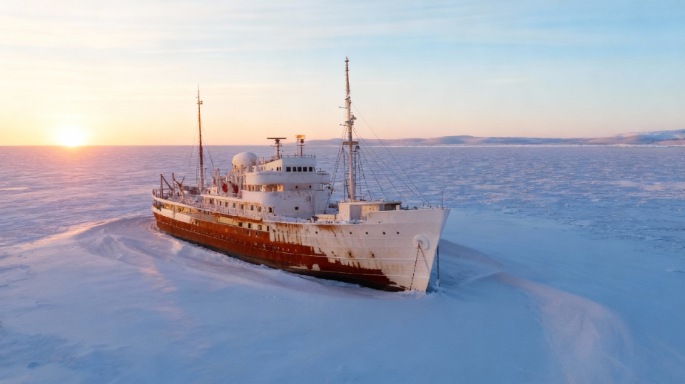 Застывший во льдах у края света, он больше похож на мираж, чем на некогда роскошное судно. Но это не обман зрения — это «Петродворец», и его история круче голливудского блокбастера, пишет блогер-путешественник Алексей Жирухин.