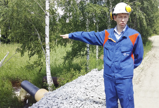 И чтобы все это не выглядело голословно, на днях руководство Среднеуральской ГРЭС ПАО «Энел Россия» позвало нашего корреспондента на ознакомительную экскурсию. Началась она с проходной, где после паспортного контроля последовал инструктаж по безопасности. Далее – процесс переодевания из гражданской одежды в спецодежду: костюм, ботинки, каску. После чего мы в сопровождении директора Дмитрия Казарина, специалиста из лаборатории, сотрудника службы безопасности и группы экологии, последовали на место выхода того самого трубопровода, направленного в шламоотвал, про который нам поведал Александр Налиткин. Именно туда поступают сточные воды от очистных сооружений исходной воды и водоочистки, дренажные воды, а также ливневые воды с части территории СУГРЭС.