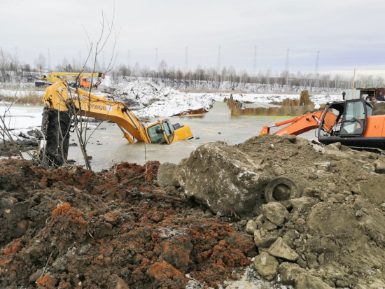 13 декабря верхнепышминцы стали свидетелями, как на строительной площадке возле озера Лебяжье в воду ушли две единицы строительной техники.