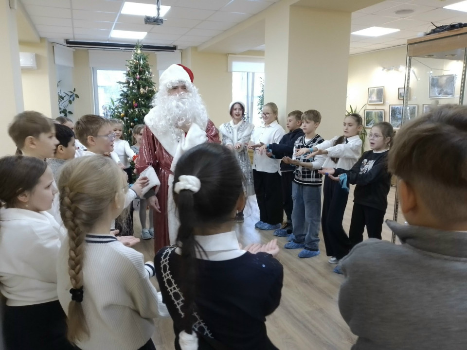 На праздник собрали школьников. Ребята с интересом слушали о том, как зарождались и менялись новогодние традиции, о том, какие игрушки вешали на елку. Рассказали им и о происхождении Деда Мороза и Снегурочки.