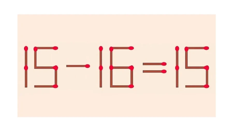 Итак, перед нами равенство «15-16=15». Но в нее закралась ошибка. Для исправления требуется переместить лишь одну спичку.