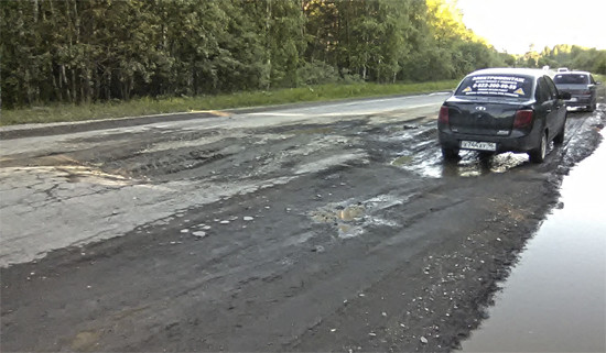Для сравнения можно взять за образец качество дорожного полотна (того, что от него осталось) на улице Октябрьской в Верхней Пышме, добавить к ним ямы улицы Сыромолотова, умножить все это на два, и только тогда можно оценить опасность тех разломов, которые поджидают водителей на участке дороги за селом Мостовским.