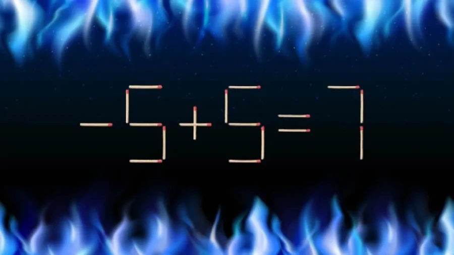 Посмотрите на картинку. Нужно исправить ошибку в примере «-5+5=7», переставив всего одну спичку. Подумайте, как это сделать.