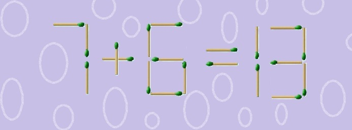 В нолике спрятан секрет. Перекладываем спичку, и ноль превращается в шестёрку. Получается «7+6=13». Всё правильно.