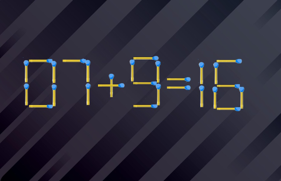 Можно убрать спичку из восьмёрки и сделать из вычитания сложение. Получится «07+9=16». Вот теперь всё правильно! Вы молодец!