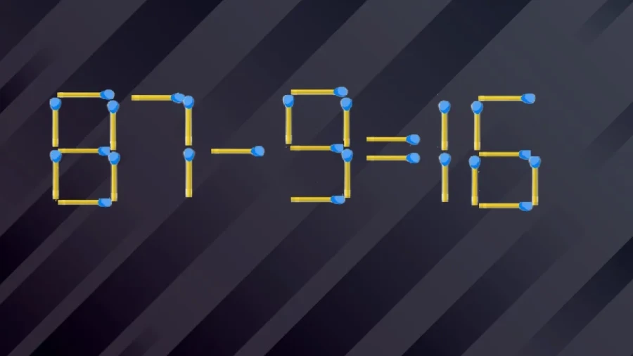 Посмотрите на картинку. Пример «87-9=16» неправильный. Нужно переставить всего одну спичку, чтобы он стал верным. Подумайте хорошенько!