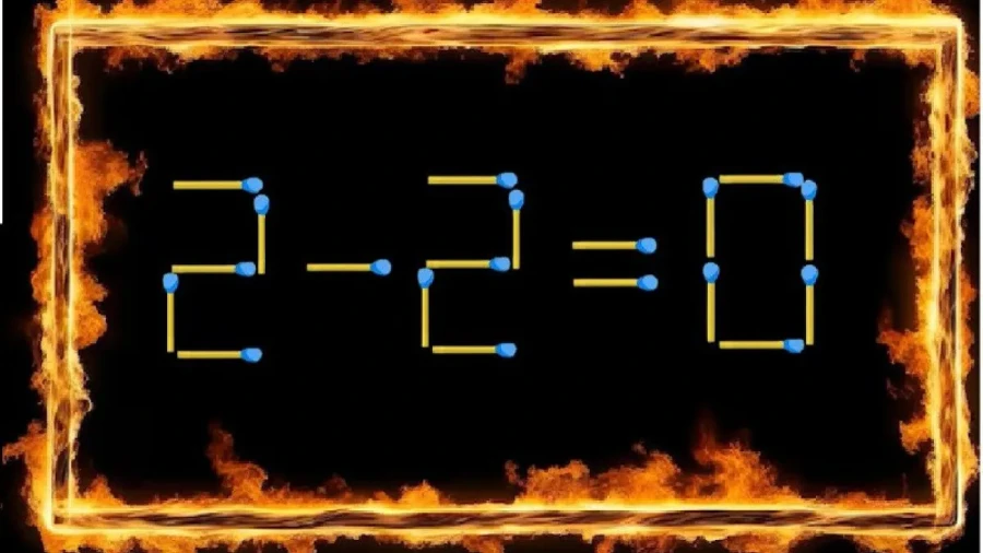 Мы предлагаем вам такую задачку со спичками, как на картинке: «2-2=9». Конечно, здесь ошибка! Ваша задача — подвинуть всего одну спичку, чтобы пример стал верным и правильным.