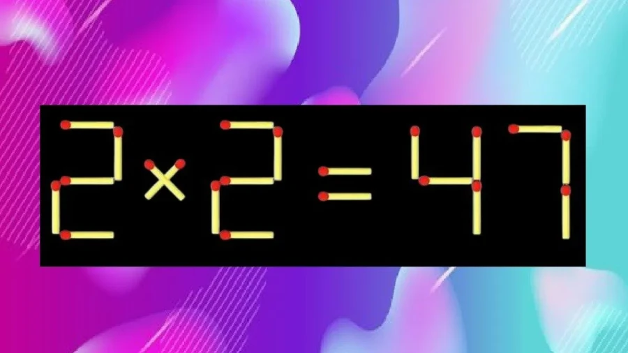 На картинке пример «2×2=47». Тут ошибка! Надо переложить всего одну спичку так, чтобы получилось правильно.