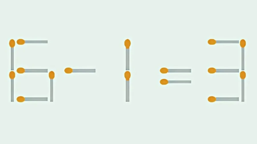Предлагаем решить головоломку со спичками. На иллюстрации представлено равенство «6-1=3». Явная ошибка, которую необходимо исправить, переместив лишь одну спичку.