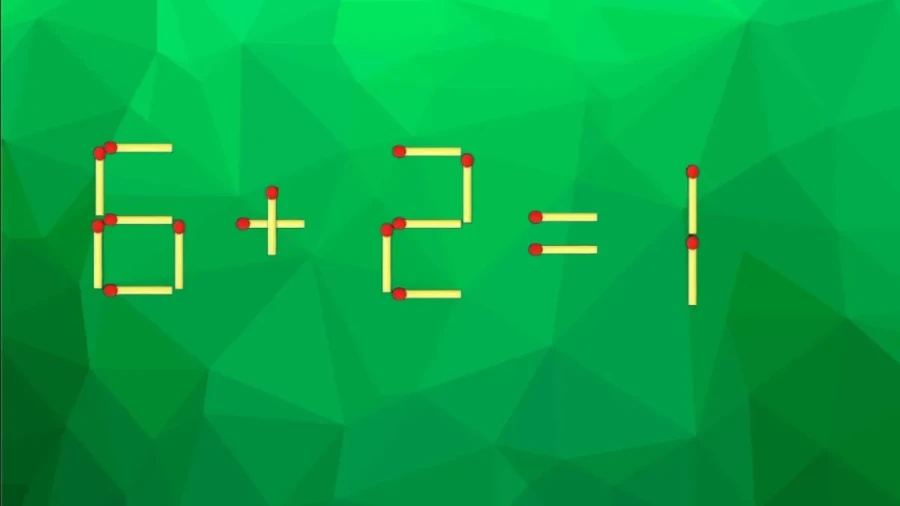 Посмотрите на картинку, на ней написано «6+2=1». Как видите, это неверно. Вам нужно взять всего одну спичку и переставить её куда-то так, чтобы получилось правильное равенство.