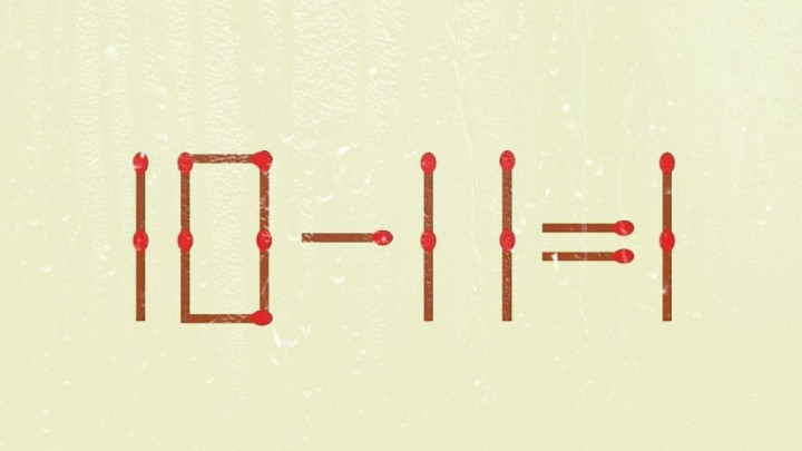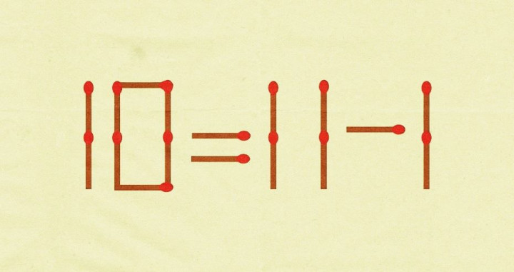 У нас есть следующая запись: 10-11=1. Ответ не выдерживает никакой критики. Для исправления ошибки необходимо переставить одну спичку. Приступайте.