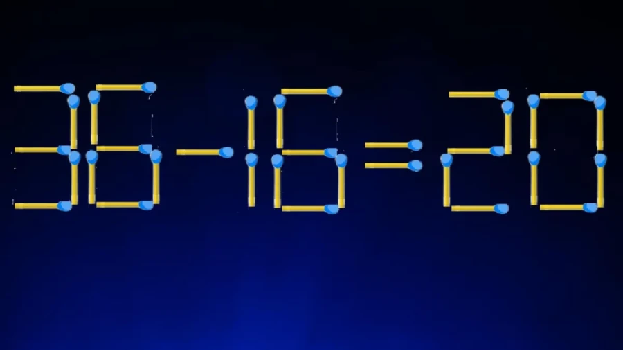 Возьмите одну спичку из цифры «8» (той, что в ответе). И этой спичкой превратите пятёрку (которая в числе 35) в шестёрку. Тогда у вас получится верное равенство: «36-16=20».