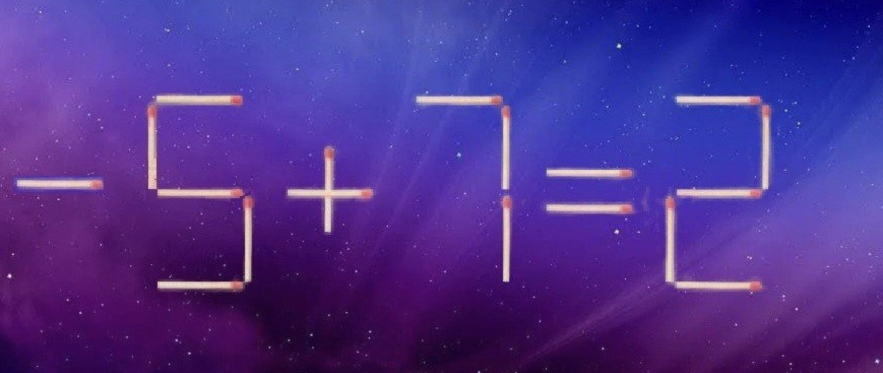 Посмотрите на изображение: с примером «9+7=2» что-то не то. Он неправильный из-за того, что его составители поставили одну спичку не на своё место. Переставьте эту спичку и сделайте пример верным.