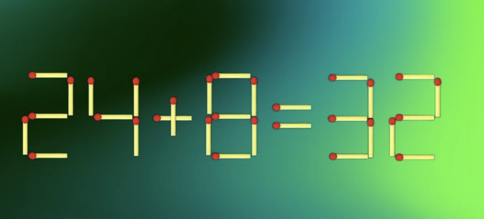 Цифру «9» можно переделать в цифру «3», а палочку приставить к цифре «6» так, чтобы получилась восьмёрка. В итоге выражение приобретёт вид: «24+8=32».
