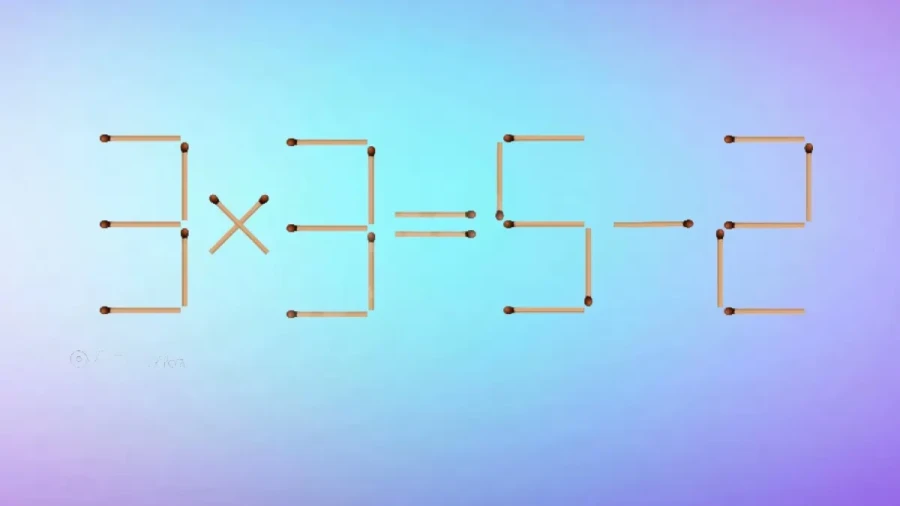 В примере «3×3=5-2» допущена ошибка. Для исправления необходимо переместить одну спичку. Приступайте к поиску правильного решения.