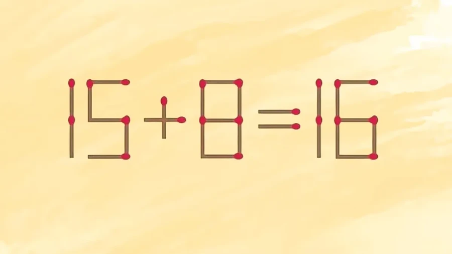 Есть следующая запись: «15+8=16». В равенстве явная ошибка, которую требуется устранить, переместив лишь одну спичку. Хорошо поразмыслите и найдите решение.