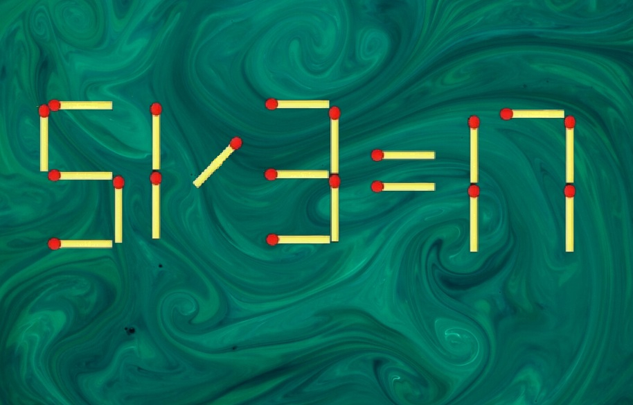 Посмотрите на пример, который перед вами: «91/3=11». Здесь явно есть ошибка, и вам нужно её исправить. Передвиньте всего одну спичку так, чтобы это выражение стало верным.