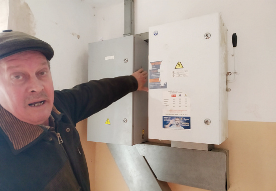 Жилец, электрик по специальности, уточняет, что этот щиток поставили в подъезд восемь лет назад. И это оборудование не соответствует требованиям безопасности. «Они вообще не должны были ставить такие рубильники, они же устарели! Где они их взяли? С каких-то складов, с 70-х годов?», – поясняет он. Временно мужчина примотал ручку проволокой, чтобы ее нельзя было опустить вниз.
