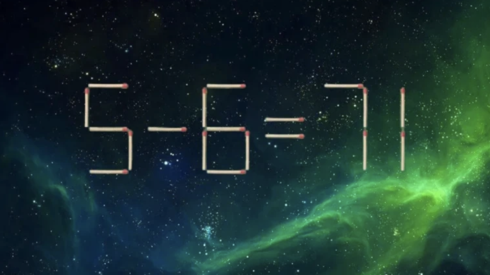 Посмотрите на картинку: выражение «5-6=71» явно нуждается в корректировке. Переставьте одну спичку так, чтобы оно стало математически верным. На решение у вас есть 7 секунд, постарайтесь уложиться в это время.