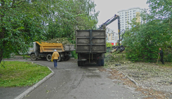 В полдень, проходя мимо здания бывшего ресторана «У Давида» в Верхней Пышме, что по улице Кривоусова, я вдруг наткнулась на неожиданную преграду – тротуар перегородили КамАЗы. Кузов одной машины был до верху гружен распиленными деревьями, второй еще производил погрузку. Стрела крана захватывала спиленные стволы и ветки, лежавшие грудой на земле, разворачивалась, и опускала их в кузов. И все бы ничего – дело нужное, но территория погрузки оказалась не огороженной! Проходящие по тротуару пешеходы вынуждены протискиваться в узкий проход между машинами, рискуя получить травму от падающих веток и сучьев.
