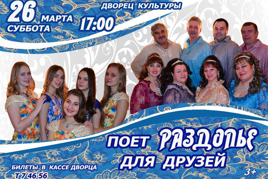 26 марта в 17.00 – Концерт театра песни. Поет «Раздолье» для друзей (билеты в кассе т. 7-46-56)