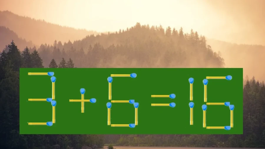 Посмотрите на картинку, где спичками выложено «3+6=16». Это неправильно! Нужно передвинуть всего одну спичку так, чтобы получилось верное равенство. Ломать и убирать спички нельзя.