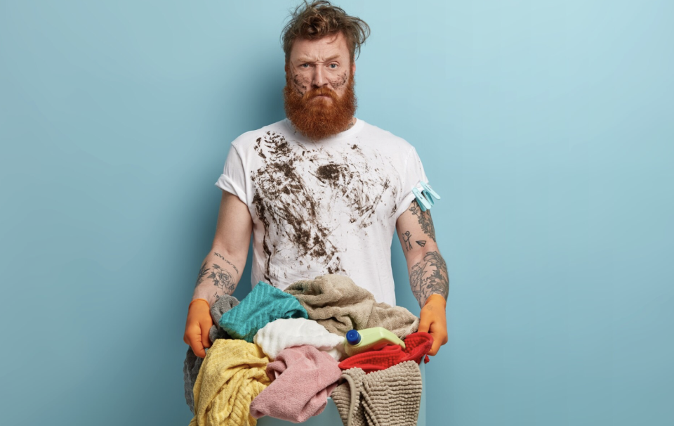 Ну и куда же без пятен от фруктов, овощей и ягод. Если вы уверены, что ткань не испортится, пятна можно просто пролить кипятком. При сильных загрязнениях затираем хозяйственным мылом на 15 минут, а потом стираем.