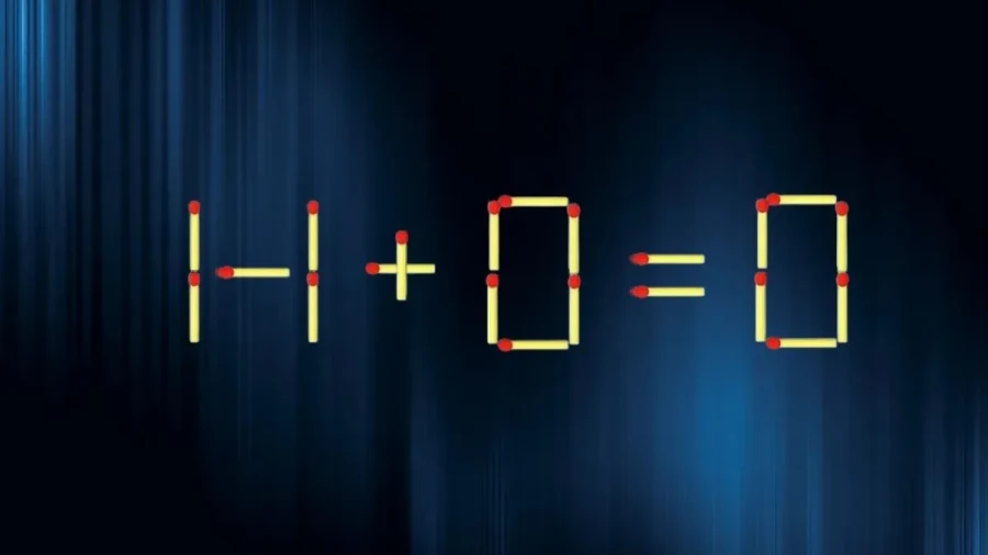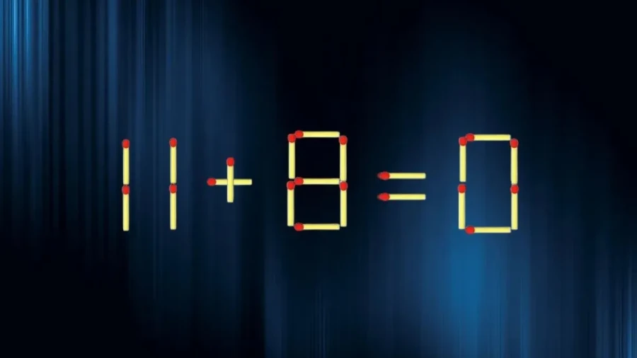 Догадаться непросто. Нужно взять одну спичку от цифры «8», превратив её в «0». Эту спичку поставьте между двумя единицами, чтобы она стала знаком минуса. Получится: «1-1+0=0». Теперь всё правильно!